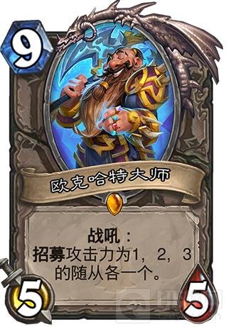 欧克哈特大师:这张牌太适合大哥体系了,对于控制型的战士更加好用。觉得脸黑也可以把魔像换成恐角龙来保证招募质量,或者增加一些你认为合适的低攻实用随从。1功不管是铸甲师还是苦痛都很不错,2功方面527是优秀的护脸生物,9费会形成一个有配合的场面,为后面的节奏打下更结实的基础。