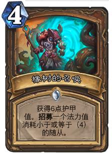 这套COMBO直接改变了之前青玉德4费疲软的尴尬局面,获得护甲的同时可以拉出436的墙、鹿盔与星界猛虎、相当于免费获得6点护甲,压缩了牌库,更容易抽到后期KEY牌,同时还能升级小型法术石,是对抗快攻不可或缺的神器。值得一提的是星界猛虎使得青玉德在面对控制卡组时哪怕护符被646游荡恶鬼摧毁后也能无视疲劳,同时也使橡树的召唤不会陷入无怪可招的尴尬境地,巨额提升了橡树的召唤这张卡的下限。