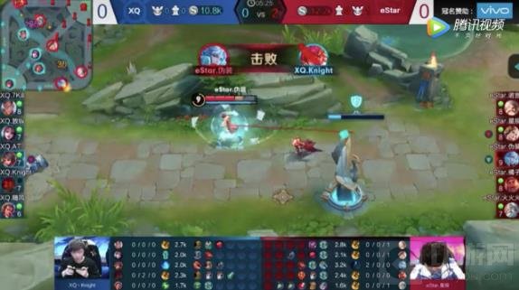 eStarPro对阵XQ的败者组决赛第一局,XQ在BP环节连Ban百里守约、马可波罗和孙尚香三位强势的射手一上来就对eStarPro放起狠招,eStarPro见状直接拿出虞姬中单,让人诧异的是打野位居然是由伪装的诸葛亮来承担,在赛中伪装利用诸葛亮的被动快速刷野,仅在前期就将XQ野区的资源一扫而空,在野区充分发育以后伪装又利用诸葛亮的位移来到线上快速支援,大招秒人,这一套路让擅长前期的XQ选手们脸色煞白。