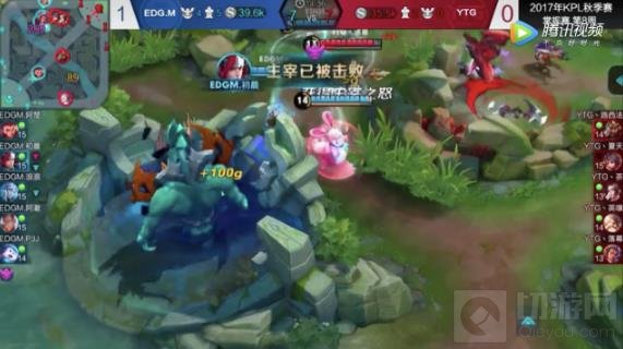 EDG.M对阵YTG常规赛第八周的第二局比赛中,EDG.M拿出韩信打野后辅助梦奇的召唤师技能也携带惩戒,每当韩信开打暴君或主宰时梦奇都蹲在附近的草丛里进行埋伏,一旦发现敌人梦奇便用二技能拖住敌人同时这也能让韩信的大招更加准确的击飞敌人,两人完美无瑕的配合很快就让YTG的野区荡然无存。