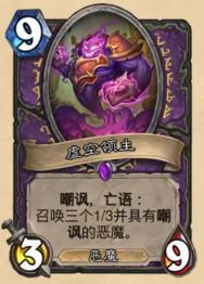 虽然暂时术士不多,且这张卡9费比较高,效果还是亡语,偏向于后期一些,但是4个嘲讽,这种铺场的恶心程度不言而喻,嘲讽的存在在这个沉默不多、萨无呱、法无羊的年代,基本是肆无忌惮,无法避免。打碎一个3/9的墙,分身变成3个1/3墙,恶心的不要不要的,别说摸脸,其他随从都摸不到。“守护”界王者!