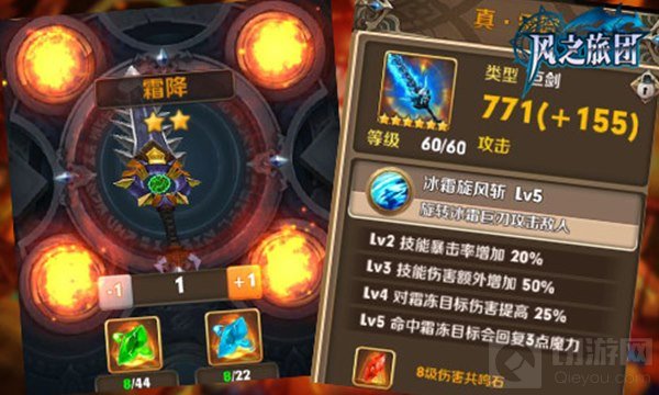 “霜降”:巨剑系中使用率较高的武器,闪耀着寒光的骷髅造型拥有“冰霜旋风斩”的震撼技能,以巨刃攻击敌人,冰冻并回复自身魔力!