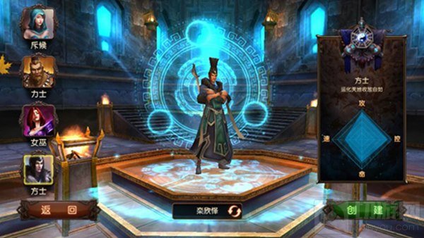 四个游戏职业分别为:力士、女巫、方士、侍候,