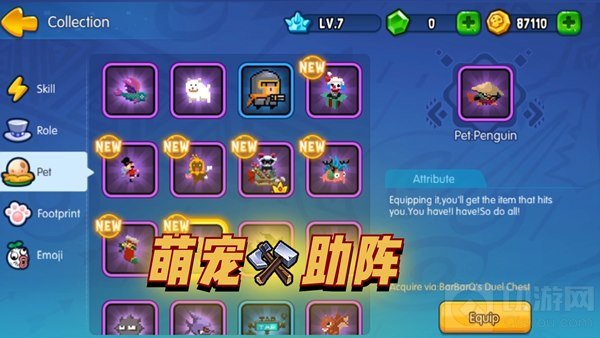 打破常规套路枷锁的技能随机玩法,长相Q萌逗趣作用独特且重要的宠物系统,一不留神就可能翻盘的绝地反杀机制,巴巴六、瓦瓦莉、卡卡班、摩摩可各色造型基萌逗趣,各种技能动作和效果深得喜爱,魔性的配乐与人物动作贯穿游戏始终刺激你的神经,尽享冒险乐趣!
