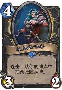 我们起手必留任务,此外还可以留暗影步、吹嘘海盗、冰川裂片、加基森摆渡人或者年轻的酒仙。对上快攻卡组时可以留一张蜡油元素强行拖时间;对上控场卡组时留影舞者,手牌顺的话精灵咏唱者。在六费之后,冲锋配合影舞者可以在一两个回合之内完成任务。