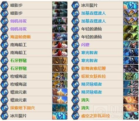 新版本潜行者的新职业橙影舞者以及中立橙蛇发女妖对于任务贼来说都相当实用,大大加快了完成任务的节奏,再加上精灵咏唱者相对精确的过牌能力,我们及时完成任务的把握更大了。此外,新卡蜡油元素在完成任务之后作用很大,特别是对上快攻卡组,圣盾嘲讽5/5的身材非常强大。DK能提升我们的后期能力,因为目前控场卡组的解场手段都比较丰富,容易将比赛往后拖,这时DK的作用就很大了,能补充额外的手牌,持续给对手压力,不让对手缓过气来反杀我们。