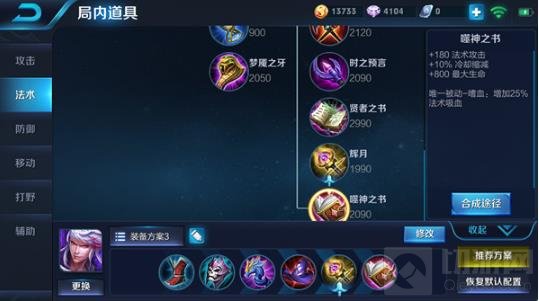 噬神之书提升高渐离的输出能力以及续航能力,加强高渐离法术攻击力的同时提供一定的吸血能力,对于高渐离这种瞬间爆发型的法师而言增益极大,依靠辉月的主动技能可以在金身期间进行源源不断的输出,同时将输出伤害转为回复的生命值,输出与生存兼顾。