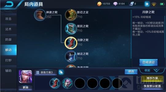 冷静之靴是所有鞋子中性价比相当高的,适用于游戏的任何一个时期。冷静之靴为高渐离提供了一定程度的冷却缩减能力,加快了高渐离技能释放的频率,在对线期间可以更好的利用一技能清理兵线以及消耗敌方英雄,同时某种程度上加强了高渐离的控制能力。且提升了高渐离的移动速度,机动性,减少赶路的时间,不浪费兵线。