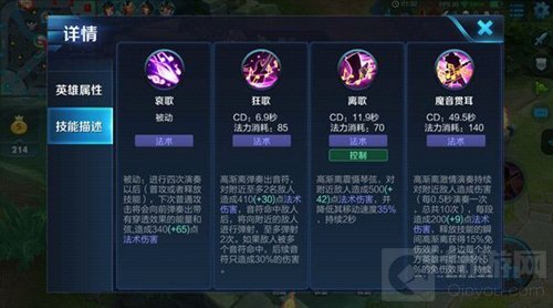 解析:高渐离的核心输出技能,主要输出来源,且冷却时间较短,可在短时间内多次释放,确保高渐离在团战中的输出伤害足够,同时在一定程度上提升了高渐离在团战中的生存能力。高渐离激情演奏对一定范围内的敌方英雄持续造成法术伤害,且在释放技能的瞬间为高渐离提供不俗的免伤加成,同时高渐离身边的敌方英雄还会额外增加其所获得免伤效果,持续时间较长,极大地提升了高渐离在团战中的生存几率。且高渐离在释放该技能时会获得高额的移速加成效果,极大地提升了其追击能力亦或是逃脱能力,加强了高渐离的反制能力。