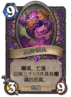 构筑成了一个卡组强力的防御体系,虚空领域可以说是标准以及于狂野的优质恶魔了,只要术士在未来的版本不隐藏,那么我会非常看好它以后的发挥,信仰术士或者有兴趣玩术士的玩家强烈推荐合成。