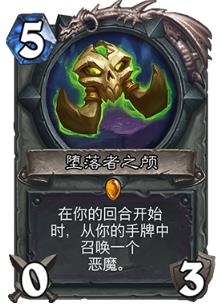 堕落者之颅:目前多见于魔块术的构筑之中,是标准魔块术的核心。 由于林恩术的封印是恶魔,会将恶魔拉下去,因此大多数林恩卡组已经将它弃用。