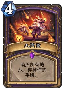 大灾变:曾经被某主播称呼为弃牌术最后一块碎片,看起来很美,特效也不错,然而实际效果却非常强差人意,大灾变的任务术基本属于送分卡组,连愉快的守门都很难做到。