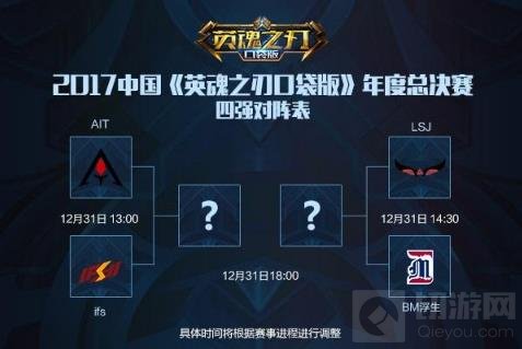 2017中国《英魂之刃口袋版》年度总决赛小组赛已然落下帷幕,ifs、LSJ、AIT、BM浮生四支战队成功晋级!12月31日,他们将齐聚上海星球影棚争夺最后的冠军宝座!