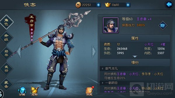 《不良人2》手游中,王彦章的特点和李星云类似,防御力高同时单体输出能力也不错,且有用一定的控制能力,适合在副本中使用。不过他的缺点也很明显,AOE能力不足,同时缺少位移技能,在PK或国战中容易被远程输出英雄针对。绝招夺命追魂枪利用令人眼花缭乱的快速攻击将敌人击入高空,随后用力将长枪掷出,单体伤害极高。技能枪火燎原是多段技,第一段用枪连续戳刺,第二段将敌人击飞;技能横空飞击可对敌人造成大量攻击伤害;技能敲山震虎同样为多段技,第一段横扫攻击面前大范围敌人,第二段跳起下劈,将敌人击飞;技能护体枪法可挥舞长枪引发体内真气,为我方全体侠客加护盾,护盾可吸收自身攻击力伤害,持续8秒。因此,王彦章技能推荐培养多段技、横空飞击、敲山震虎以及护体枪法。