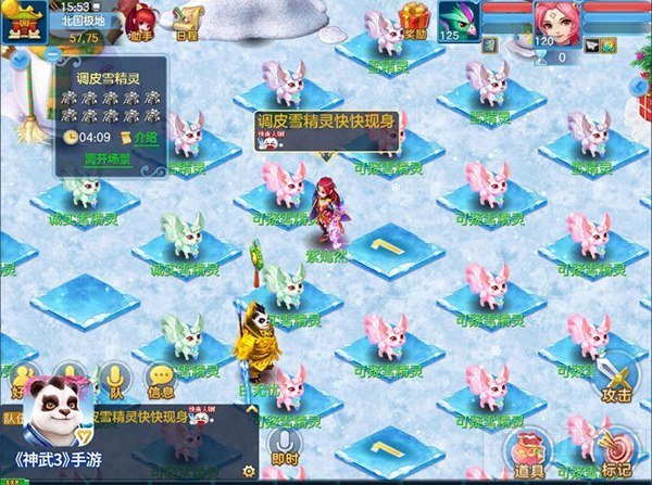 冰天雪地妖魔来袭,九黎残部意图复活被封印的妖王玄冥,赶快组起三人以上队伍抗击分散在各个地图的九黎妖魔;调皮的小精灵偷走了圣诞老人给大家准备的礼物,组成五人小分队击败他们,夺回礼物吧……《神武3》手游双旦冰雪狂欢火爆进行中,六大活动、丰厚奖励乐享不停。