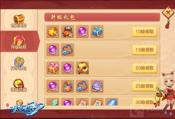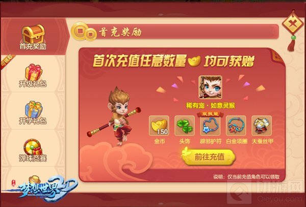 抽神兽,进新服!《梦想世界3D》全新内容“物华天宝”随新服火热上线,所有侠士首次充值任意金额均可获赠稀有宠物-如意灵猴一只!更有精致的四叶草头饰、双技能辟邪护符等专属好礼新年特送!相信有了他们的陪伴,各位侠士一定能在游戏前期如虎添翼!除此之外,在游戏中,从10级开始,各位侠士每提升一定等级,都将获得奖励丰厚的升级礼包。升级礼包除了内含装备包、银两银币、还童丹、修炼丹、宝石、包袱等日常道具助力升级之外,还有强力宠物、超级宝图、强力兽诀等珍稀道具陪你闯荡梦想大陆!