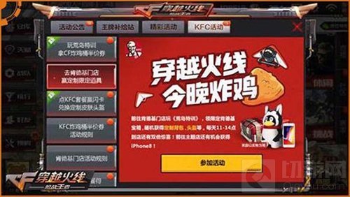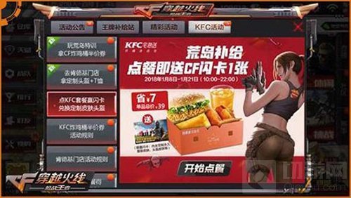iPhone8、炸鸡桶半价券、限量游戏闪卡、永久玫瑰精灵……CFM“荒岛特训2.0”版本联合肯德基打造2018年初最大惊喜福利,宅在家里玩荒岛特训即可随时吃炸鸡,前往肯德基门店还有专属惊喜,赶紧呼朋唤友来荒岛特训吧!