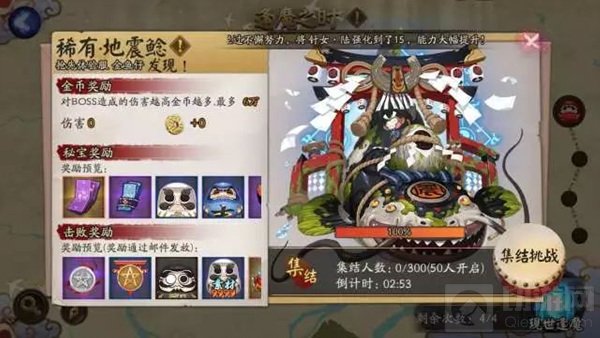 发现地震鲶后可点击进入介绍界面集结,集结时间为3-6分钟。在集结场景可以备战、邀请好友加入战斗,开战之后无法继续集结加入战斗,切记把握良机。