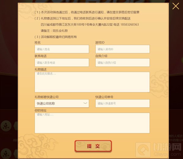 2018年1月2日至16日活动期间,为素未谋面的大话好友寄出你的情义礼物,登录大话同乐会专题页面,准确填写你的个人信息与礼物信息,官方收到确认后,即有机会通过礼物交换的方式,收到代表玩家心意的神秘情义礼物,同时收获一段来自大话兄弟的意外缘分!