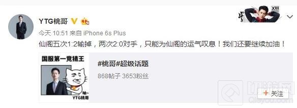 YTG教练的桃哥也送别这位曾经的王者,你们离胜利可能真的只差一步的运气。为仙阁叹息的同时,YTG也将带着他们的信念继续走下去!