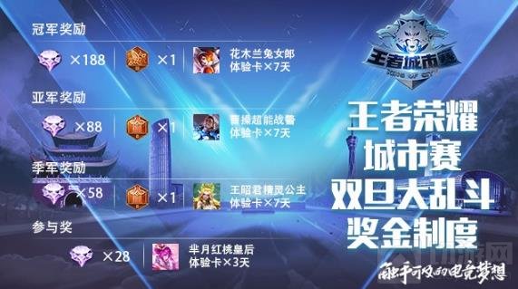 而此次比赛更是奖品多多,参赛的玩家有机会获得多重惊喜。只要参与比赛的玩家,都可以获得3天的芈月-红桃皇后皮肤体验卡与28钻石。获得冠军的选手可赢取188钻石,3级铭文:信念,花木兰兔女郎皮肤体验卡7天。夺得亚军的队伍可得:88钻石,2级铭文:白刃,曹操-超能战警皮肤体验卡7天。季军队伍可得:58钻石,2级铭文:白刃,王昭君-精灵公主皮肤体验卡7天。奖品丰富,为召唤师们在寒冷中再添惊喜,带给你不一样的温暖冬季!