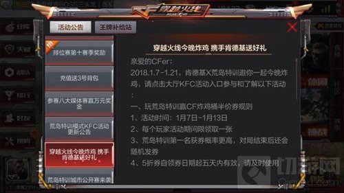 首先,现在只要每日登陆就会有钻石和枪支碎片赠送,而钻石可以抽奖也可以兑换礼包就有机会获得永久枪支,每日还可以免费抽奖一次有机会获得诸多超棒枪支,像AWM-天龙,汤姆逊-烈龙等,而在充值上仅需一元就送超人气武器M4A1-S,外加防弹套装简直不要太良心,而且除了这些,CF手游还联合KFC共办活动,1月7日到13日玩游戏就有机会获得肯德基炸鸡桶半价券,而游戏获取第一名获得奖券的机会更大,我们都知道在这样游戏中,武器是最重要的,所以CF手游送武器福利简直不要太贴心。