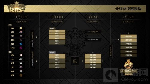 1月12日,12支战队分为A、B两组进行小组赛。经过两轮BO5小组赛,分出胜者组与败者组。1月13日,胜者组与败者组进行两轮BO5的淘汰赛,胜者组前2直接晋级总决赛。胜者组后4将和败者组前2相遇1月14日的半决赛,从一轮BO7中决出剩下4支晋级总决赛的队伍。总决赛将于2月10日在上海梅赛德斯奔驰文化中心打响终极一役。