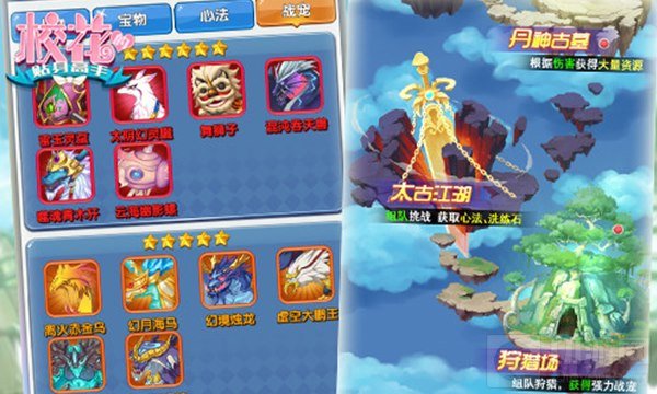 不同的“战宠”能在战场上交出不同的技能,从一星到五星,从体态娇小到身形庞大,从攻击防御,到回血团灭,每一种“战宠”都发挥着与众不同的战力哦!玩家还能通过激活其“天赋”,来增加战宠单体的伤害加成。