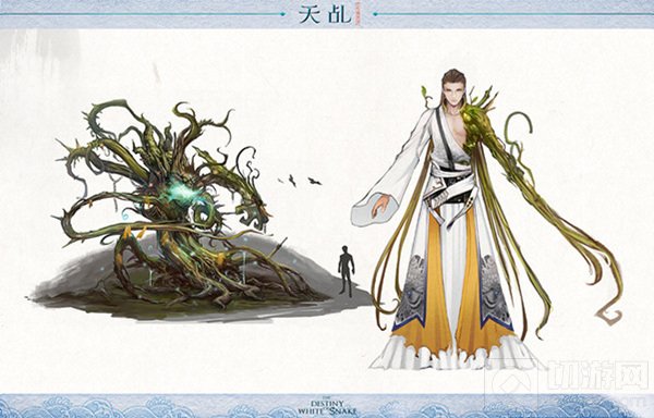 藤妖的人身形象和妖身原形有着很大的反差,磅礴的生命力使得他人类的外表青春永驻、充满邪魅,身体的设计则增加了藤状的手臂,可长可短、可攻可守,猝不及防之下缠绕对手,使其动弹不得。