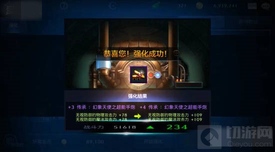 跟端游一样,强化成功后会增加武器的双攻,同时增加战力。强化到十以上武器会有外观特效,整个武器会发出红光,这可是在端游+15以上才有的特效哦。由于小编炉岩碳没攒够,只能强化到+5很是尴尬。
