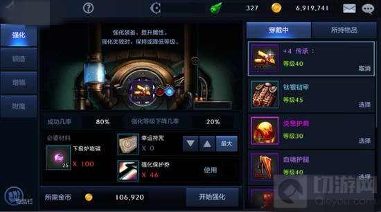 准备完材料后随即开始强化,准备好金币就行,这可是一个大坑。从五测开始只能一次一次的强化,不能像端游那样痛快点选择一次性+10强化。