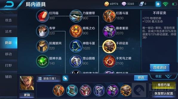 出装:红莲斗篷、抵抗之靴、反伤刺甲、魔女斗篷、霸者重装、不祥征兆。