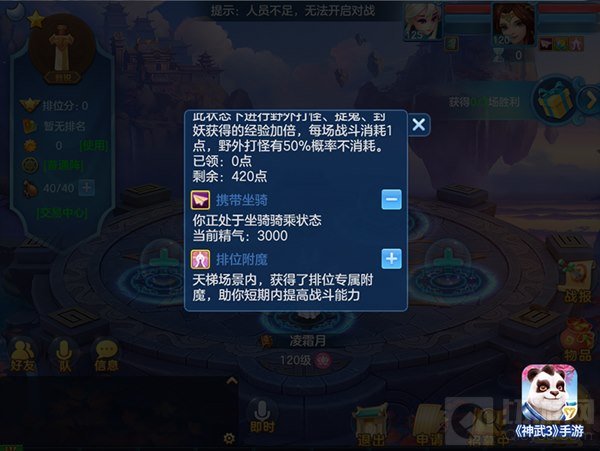 如果附魔种类不是自己想要的,还可以点击状态栏“武天斗气”选项,自由更换其他附魔属性。这就大大方便了玩家参与排位赛,还可以随心所欲发挥出更强的实力。以辅助门派普陀为例,在攻击、防御、法攻、法防、速度、魔法、气血七种附魔中,攻击和法攻作用不甚明显,在排位赛实战中,可选择另外5种附魔效果,达到最优化配置效果,为赢得比赛打下坚实基础。