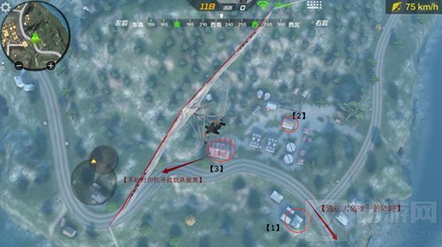 提示:如果发现很多敌人全部都往这里落脚,我们难有立足之地的话,可以尽量往公路上降落,利用载具到其它区域发展。或者直接滑翔到往海边,利用水上的“汽艇”到对岸去发展也是不错的选择!