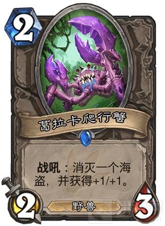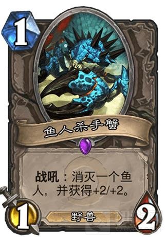鱼人杀手蟹:这张卡对于鱼人卡组来说杀伤力实在是太大了,前期只要吃一个鱼人骑就铺不了场。3/4的身材能吃鱼人骑至少两个攻击频率,这就确保了我们能够安心占领场面上的主动。