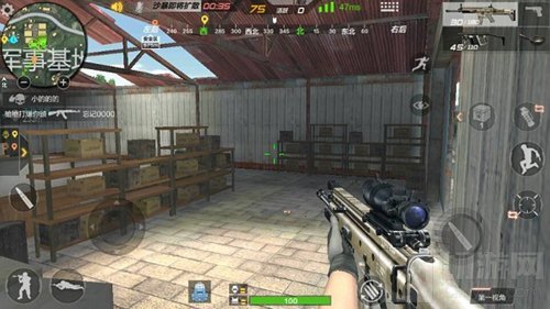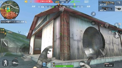 在这里需要提醒小伙伴们一点,如果敌人比我们先占领了仓库,首先就要确立他的位置。如果位置都确立不了就不要再去他竞争了,那样风险太大。在确立了敌方位置之后,可以扔出一个烟雾弹干扰敌方的视线,然后切换成近身武器快速的到达仓库的另一个门口,在他以为我们要利用烟雾过来的时候我们已经到达他的背后了。此刻淘汰敌人就变得容易许多。