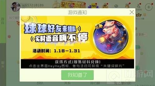 球球大作战开启了heyhey语音活动,只要我们登陆heyhey语音即可获得好礼,而且每日参加heyhey组队语音还可以获得关键词皮肤碎片哦,下面切游小编就为大家介绍球球大作战heyhey语音活动详情。
