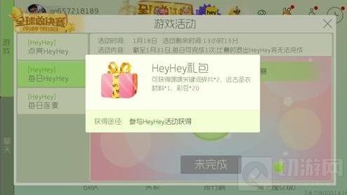 活动奖励:HeyHey大礼包(包括嘿嘿关键词皮肤碎片*3,棒棒糖*3、彩豆*30)