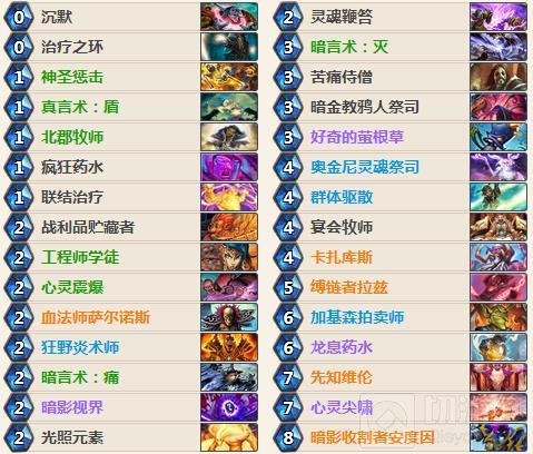 这些就是我认为一些可以替换的组件。宴会牧师是一张非常非常好的单卡,对于快攻来说,宴会牧师的威胁不亚于大帝。一旦一个回合解不掉,可能之前打的伤害全部都白打,所以这里不建议替换。