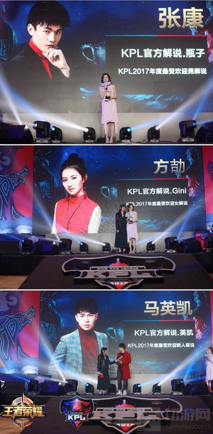 瓶子获得2017KPL最受欢迎男解说,Gini获得2017KPL最受欢迎女解说,英凯获得2017KPL年度最受欢迎新解说奖。