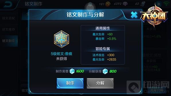 蓝色铭文:兽痕x10--最大生命+60;暴击率+0.5%