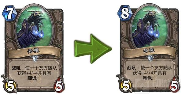 把法力值消耗提高1点后,对手可以有更多的时间,用强大的后期卡牌对抗骨魇对场面的影响。
