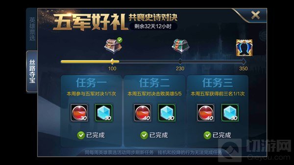 点击游戏大厅——右侧【活动】——顶部【点赞团战精神】——丝路夺宝——查看指定任务——参与五军完成。这个任务是一周更新一次,每周只需要完成三个任务,四周就能把动态头像框拿回家。