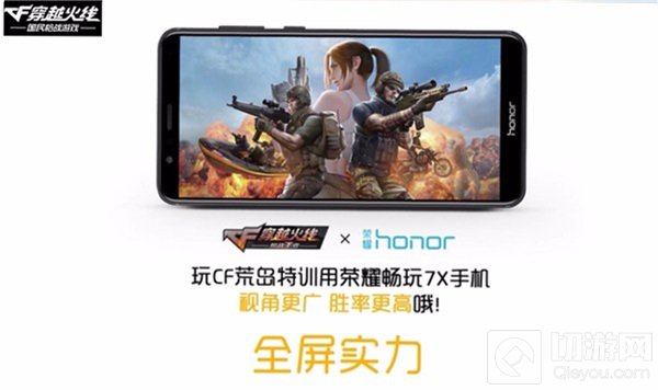 荣耀畅玩7X是荣耀手机首款全面屏手机,全面屏的设计能给使用者带来更宽阔的视野,并且在尺寸相当的情况下也拥有更小巧的机身。荣耀畅玩7X全面屏采用的18:9的显示比例,通过专门的优化,能让使用荣耀畅玩7X的玩家在CF手游对战中,比使用常规16:9屏幕手机的对手看到更多视野,如此卓越的先天优势配合玩家锻炼已久的娴熟操作,生存特训中勇夺第一将不再是偶然!