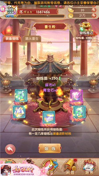许多入宫早的小主们每天晨昏定省、勤勤恳恳地努力提升自己的战斗力,早已将随从们的整套红装收入囊中,但是却苦于在收集完毕后,找不到更大的提升空间。此次《熹妃Q传》更新优化以后,红装加入了淬炼功能,进一步陪伴小主们在宫廷风云中精益求精!