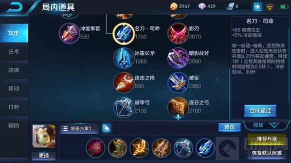 解析:当游戏进行到后期,敌方前排的抗性显著提高,此时选择破甲弓能够穿透敌人的护甲,打出更高的伤害。射手是一场团战输赢的关键,因此最后一件装备选择名刀司命在增加输出的同时为自己提供一定的生存能力,毕竟游戏后期英雄的复活时间增长,一次意外的死亡或许就会导致游戏的失败。