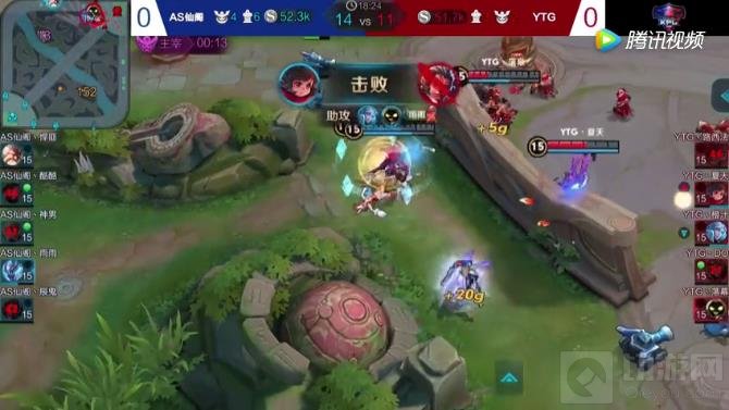 AS仙阁的开团打得很强势,白起的控制,老夫子的控制,张飞的控制衔接的都很不错,但是YTG李元芳在被太乙真人复活后利用走位在后方打出了很高的伤害,从而让敌人在这波团战中没有占到便宜。
