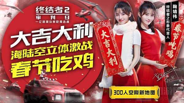 情人节遇上过大年,秀恩爱的人可以狂撒狗粮,单身狗却要忍受“你对象呢”和“你工资多少”的双重暴击。幸运的是,有《终结者2:审判日》代言人鞠婧祎陪你一起吃鸡过节,还有情人节新版助你“飞鸡传书”,写出爱情宣言,寻找吃鸡伴侣,赢取精英补给券!