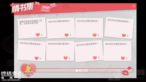 活动期间,玩家可以进入“情书”界面,写下自己的爱情宣言,并查看其它玩家的宣言和点赞,你的文字,或许能够打动他/她!获得一定数量的点赞后,玩家还可获得精英补给券奖励,可开出丰厚奖励!