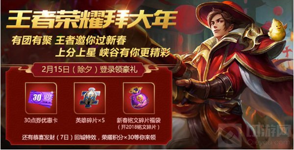 包含30点券优惠卡、30荣耀积分、英雄碎片*5和至少开出288铭文碎片的福袋等五大豪礼,伴你渡过一个丰盛富足的除夕~